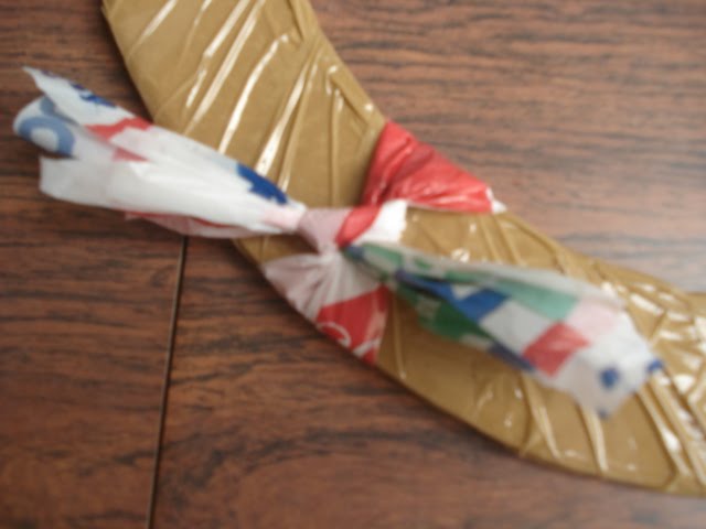 Veja como é fácil!! Você vai precisar de: papelão, fita adesiva larga, cordão de silicone ou até mesmo um pedaço de fita (para pendurar a guirlanda), fita larga para o laço, bolas de natal, flores artificiais e as sacolas de supermercado é claaaro. Vamos lá...mãos a obra!!!